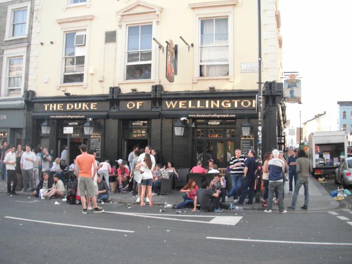 Durante este percurso, eu notei que as calçadas em frente aos pubs estavam tomadas de gente sentada na guia e bebendo e pensei comigo “caramba, os pubs devem estar lotados”. Quando entrei no Duke of Wellington percebi que lá dentro estava vazio. Ai caiu a ficha que, por terem pouco tempo de clima bom e que propicie aproveitar atividades ao ar livre, os ingleses (e mais tarde descobri que também os outros europeus) aproveitam ao máximo o clima bom quando possível.