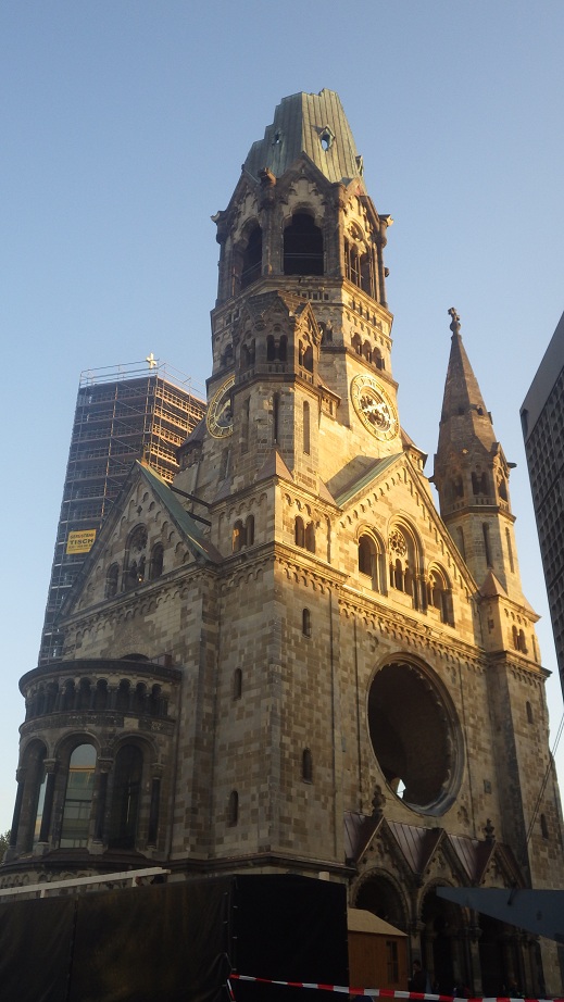 Na volta, como será final de tarde, se houver pique de caminhar mais um pouco, a sugestão é conhecer a Kaiser Wilhelm Gedächtniskirche, a famosa igreja “sem teto”. As torres da igreja foram bombardeadas e decidiram conservá-la desta forma e, ao lado, construiram uma outra estrutura para efetivamente realizarem as cerimônias. Ela fica na região da Kurfürstendamm, que pode ser considerada a Oscar Freire de Berlin, com suas lojas de grife e luxo. Ali perto fica a KaDeWe, uma loja de departamentos cuja visita também vale à pena, especialmente à sua seção de alimentos e bebidas, onde pode-se encontrar itens de qualquer parte do mundo.